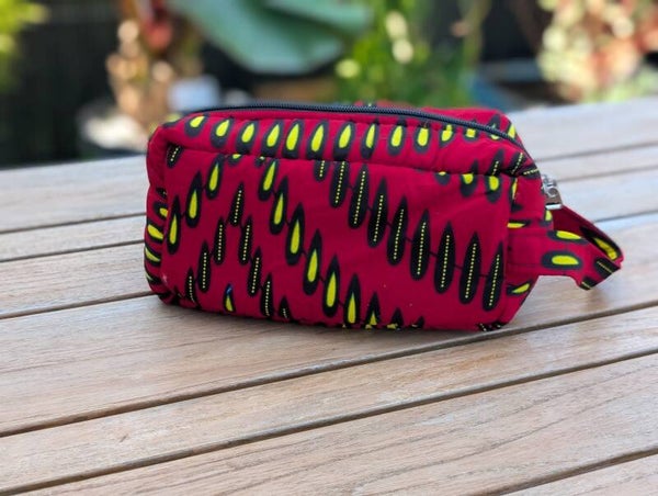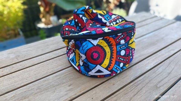 Nos trousses de toilette et beauty cases sont entièrement confectionnées en wax, à l’intérieur comme à l’extérieur, par des artisan·es talentueux·ses du village d’Assahoun, au Togo. Chaque pièce est cousue avec soin et originalité, dans un tissu vibrant, solide et facile d’entretien.