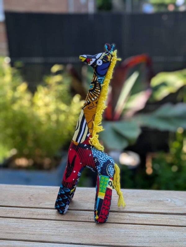 Ces adorables girafes en tissu wax sont de véritables objets décoratifs et ludiques. Douces, stylisées et pleines de fantaisie, elles égaient un intérieur tout en apportant une touche africaine.